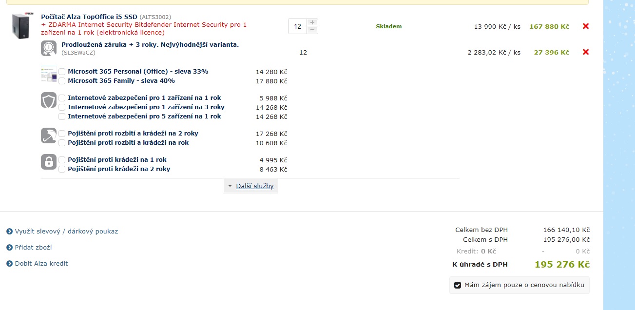 Nákup 12ks PC sestav dle specifikace (v příloze).